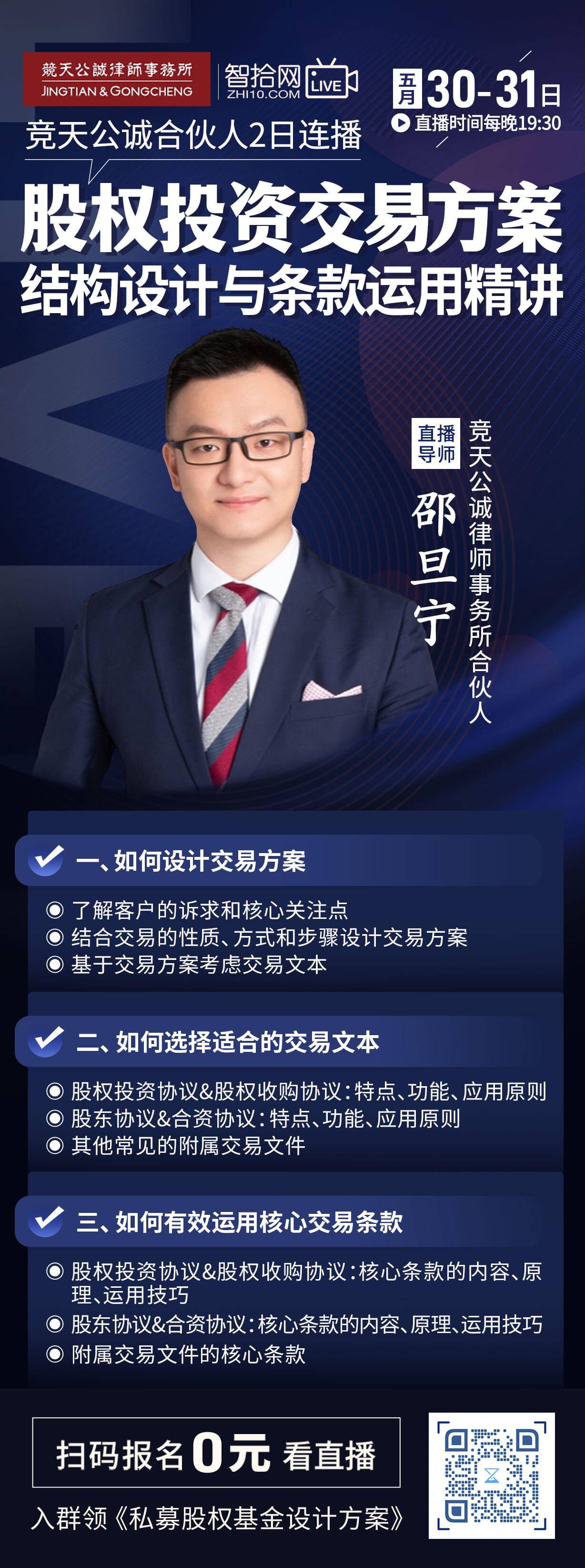 邵旦宁:股权投资交易方案结构设计与条款运用精讲
