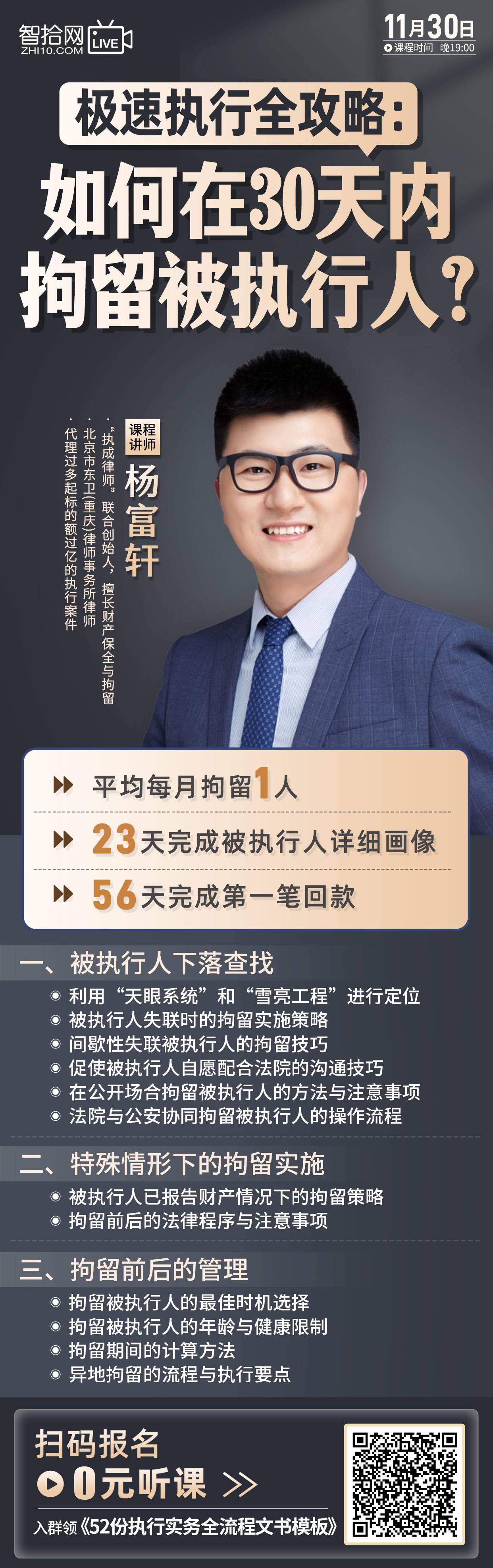 【直播回看】杨富轩:极速执行全攻略——如何在30天内拘留被执行人? VIP专享