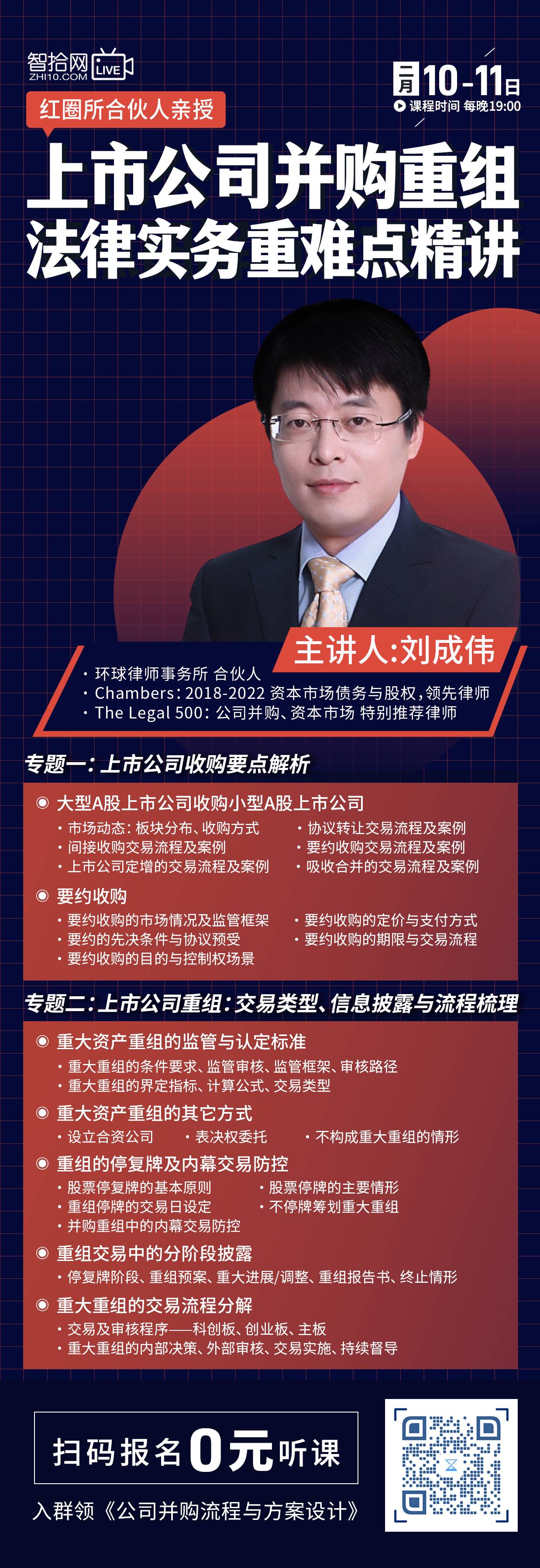 【直播回看】刘成伟:上市公司并购重组法律实务重难点精讲
