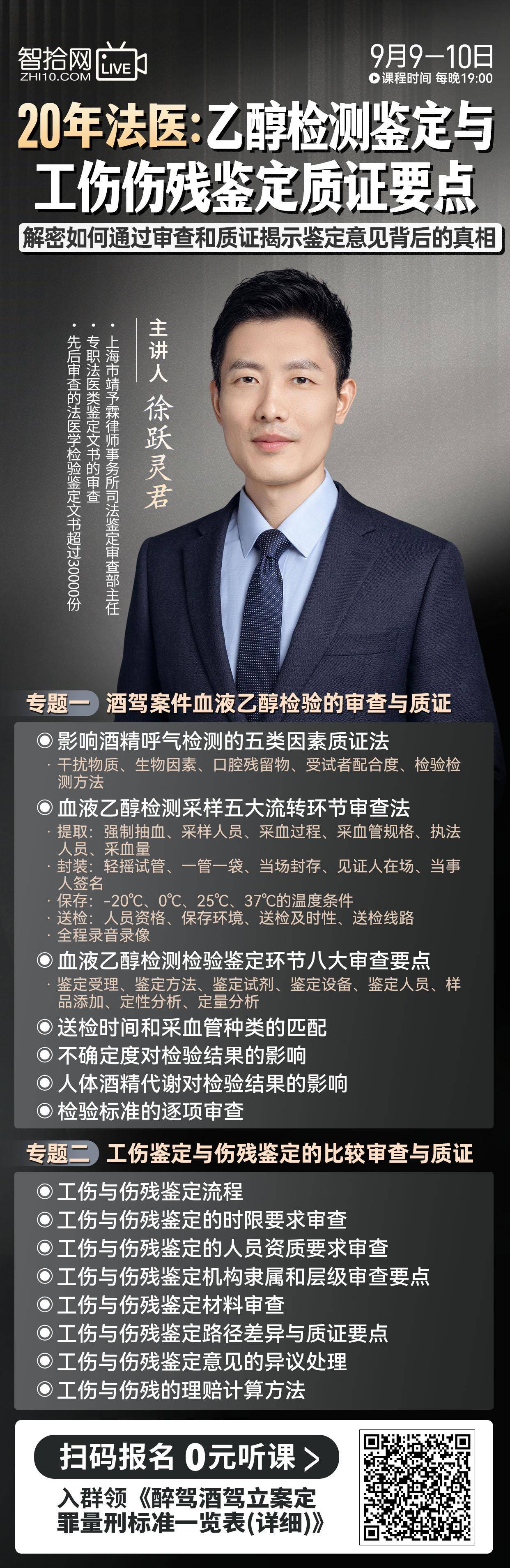 【直播回看】徐跃灵君:乙醇检测鉴定与工伤伤残鉴定质证要点
