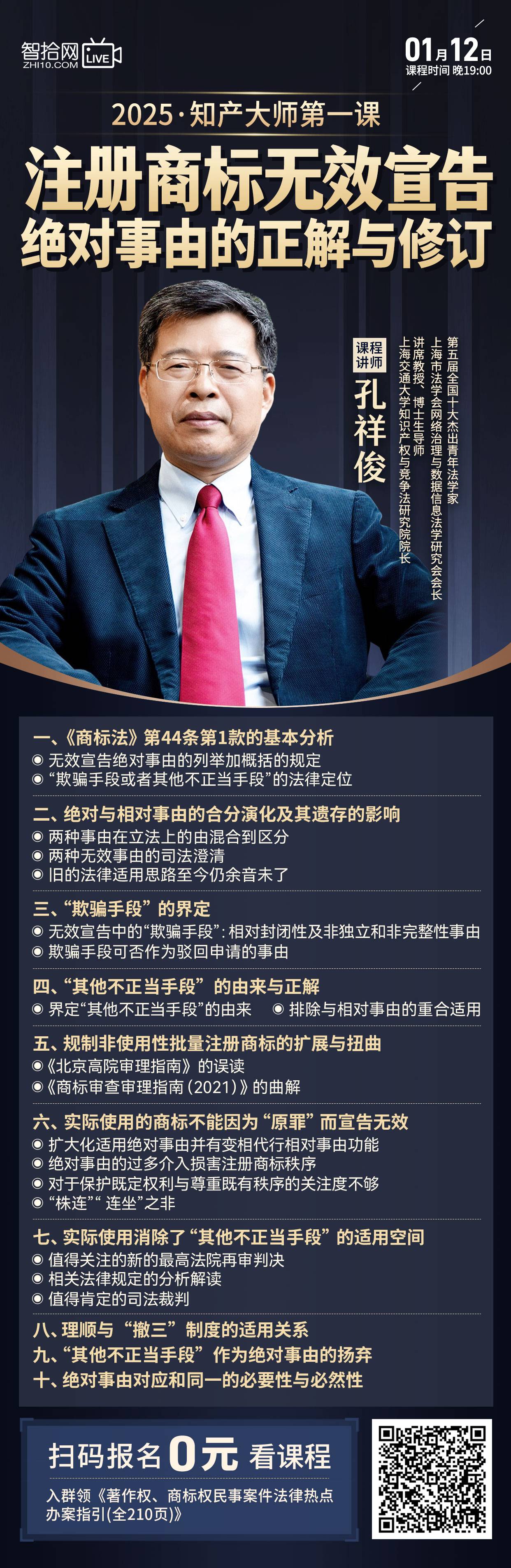【课程回看】孔祥俊:注册商标无效宣告绝对事由的正解与修订