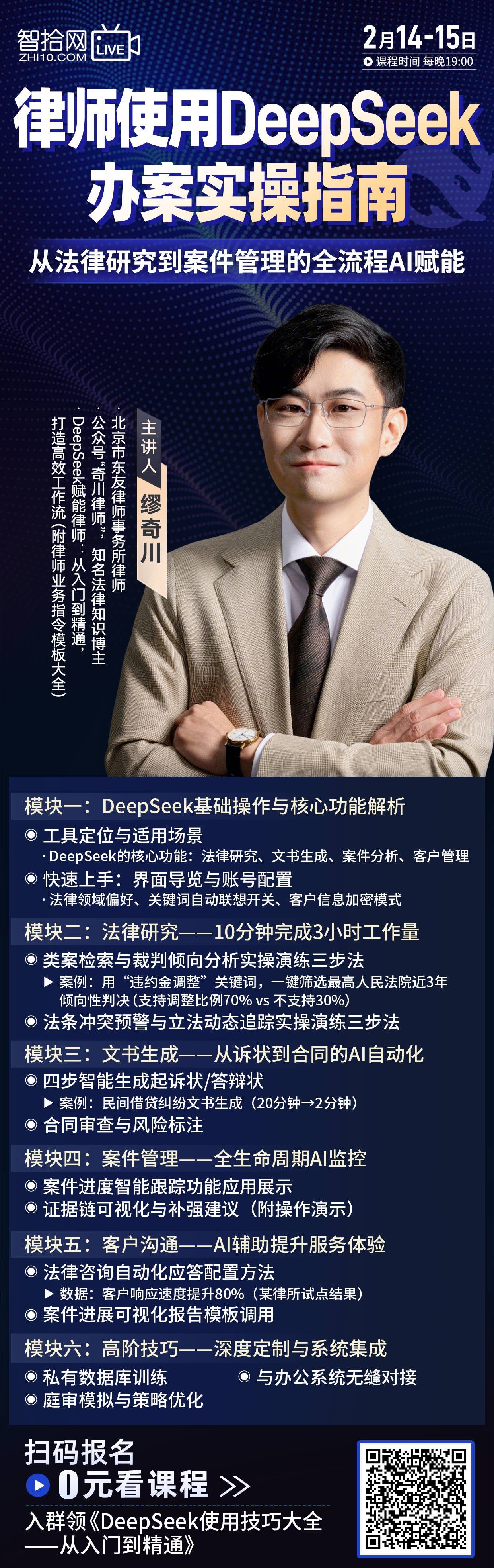 【直播回看】缪奇川:律师使用DeepSeek办案实操指南
