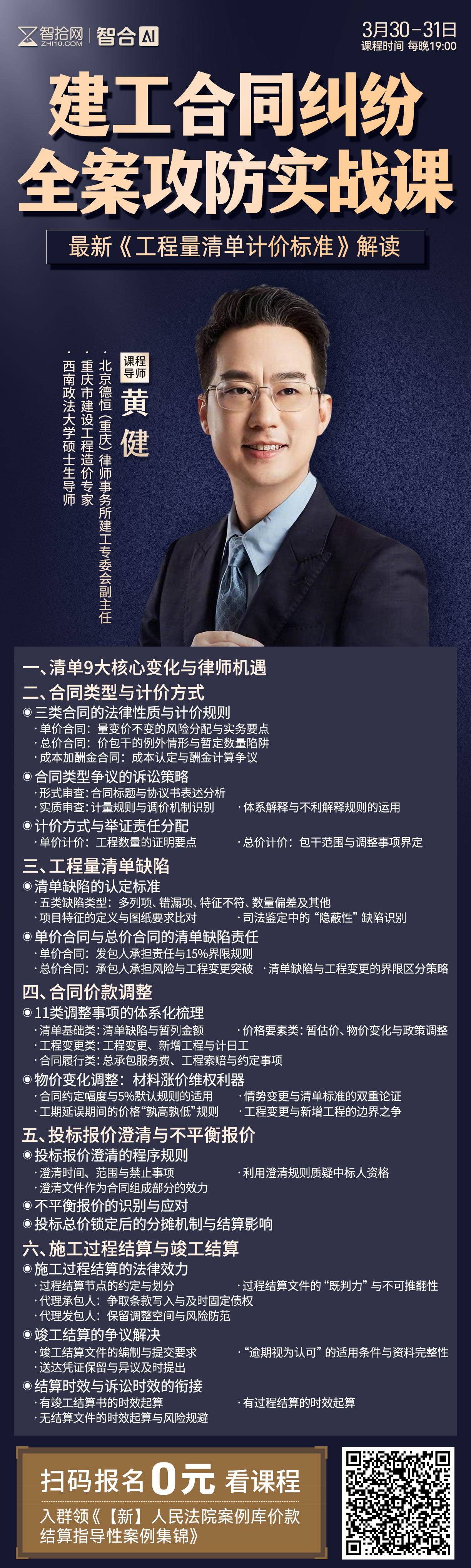 【两天免费直播】黄健:建工合同纠纷全案攻防实战——最新《工程量清单计价标准》解读