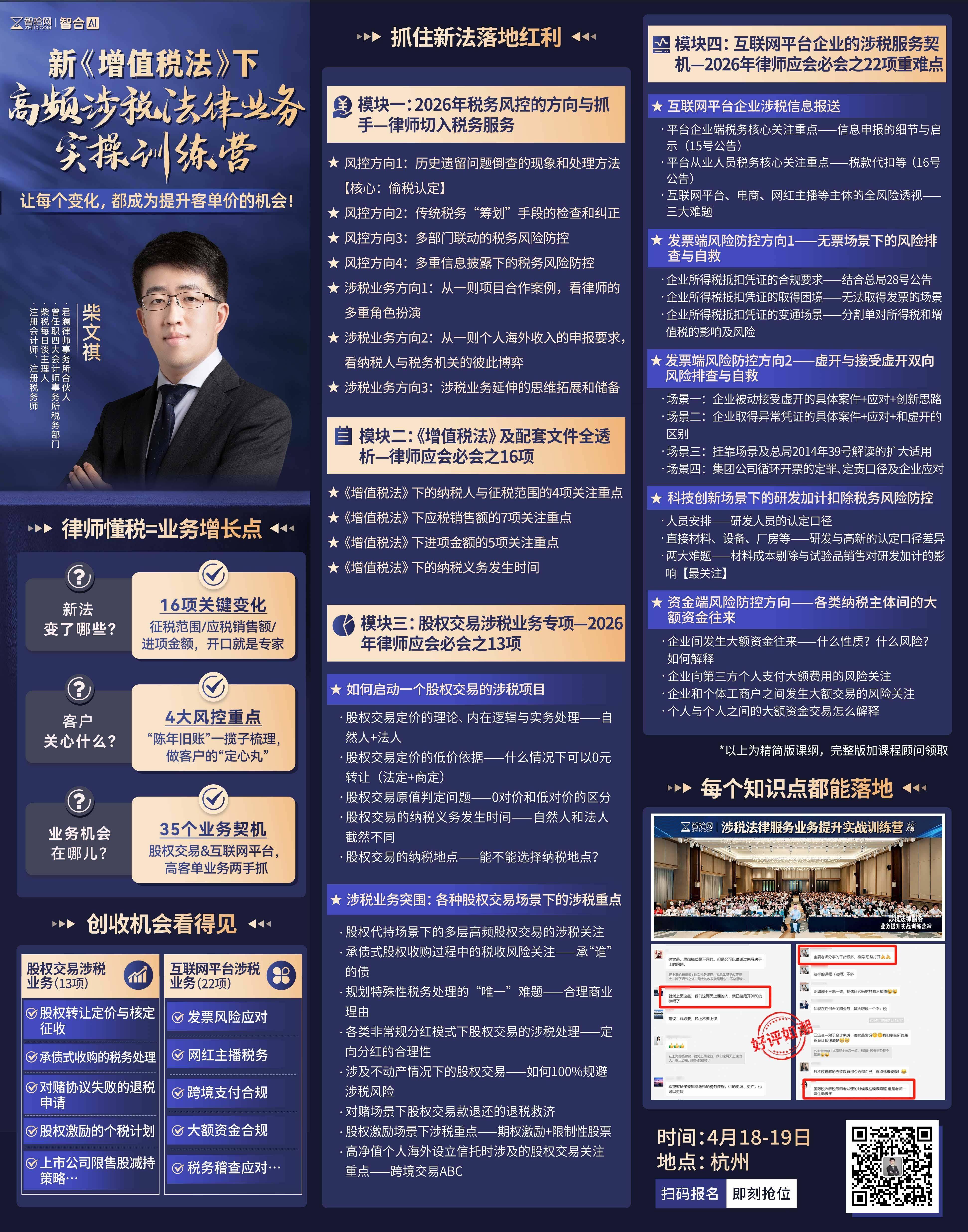【团购特批】0418-杭州-涉税实战训练营报名链接-智拾网Caden 扫二维码继续学习 二维码时效为半小时