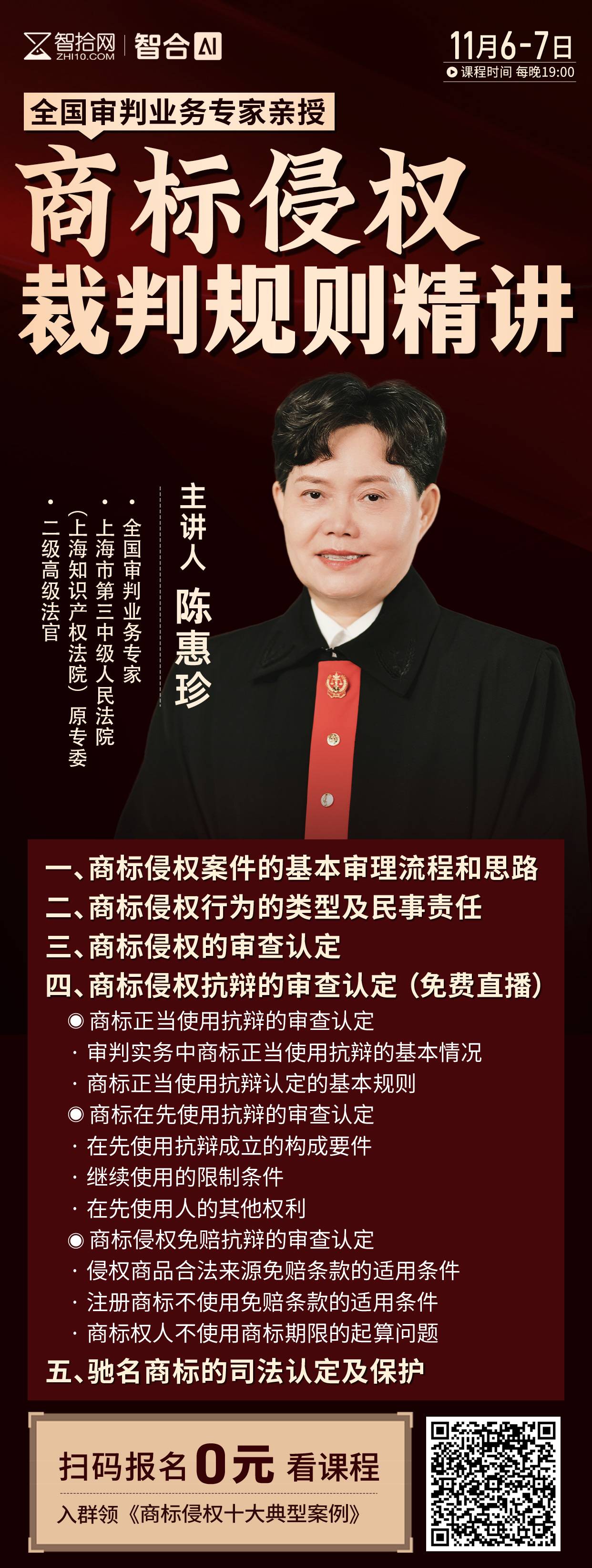 【两天免费课程】陈惠珍:商标侵权裁判规则精讲