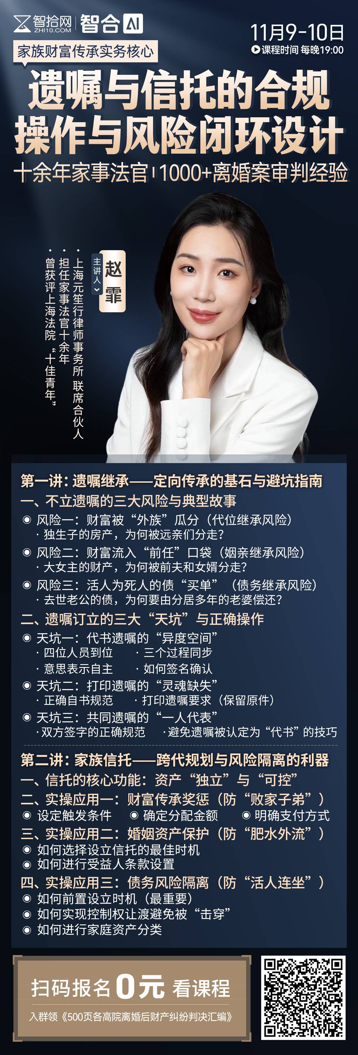 【两天免费直播】赵霏:遗嘱与信托的合规操作与风险闭环设计