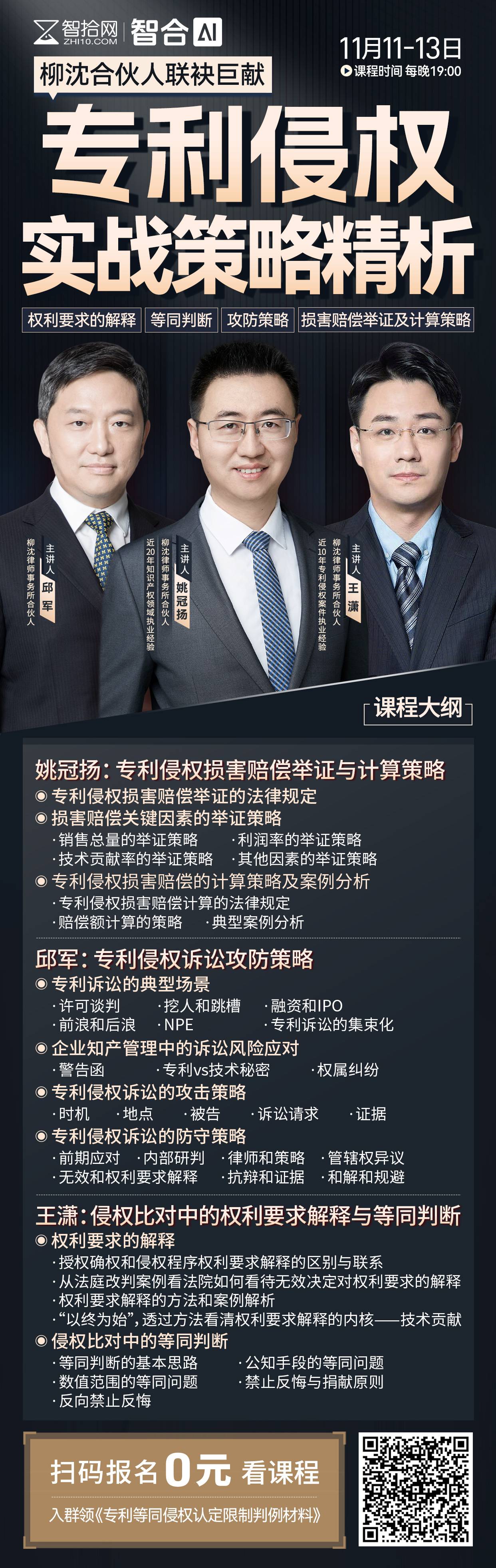【课程回看】柳沈合伙人联袂:专利侵权实战策略精析