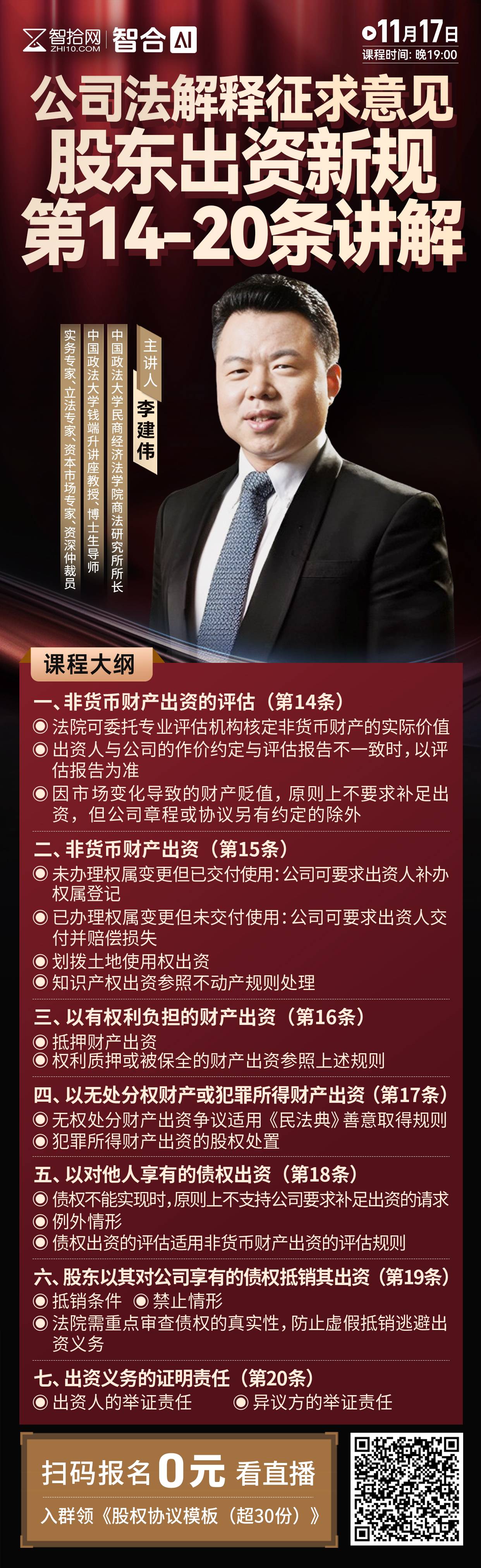 【直播回看】李建伟:公司法解释征求意见股东出资新规第14-20条讲解