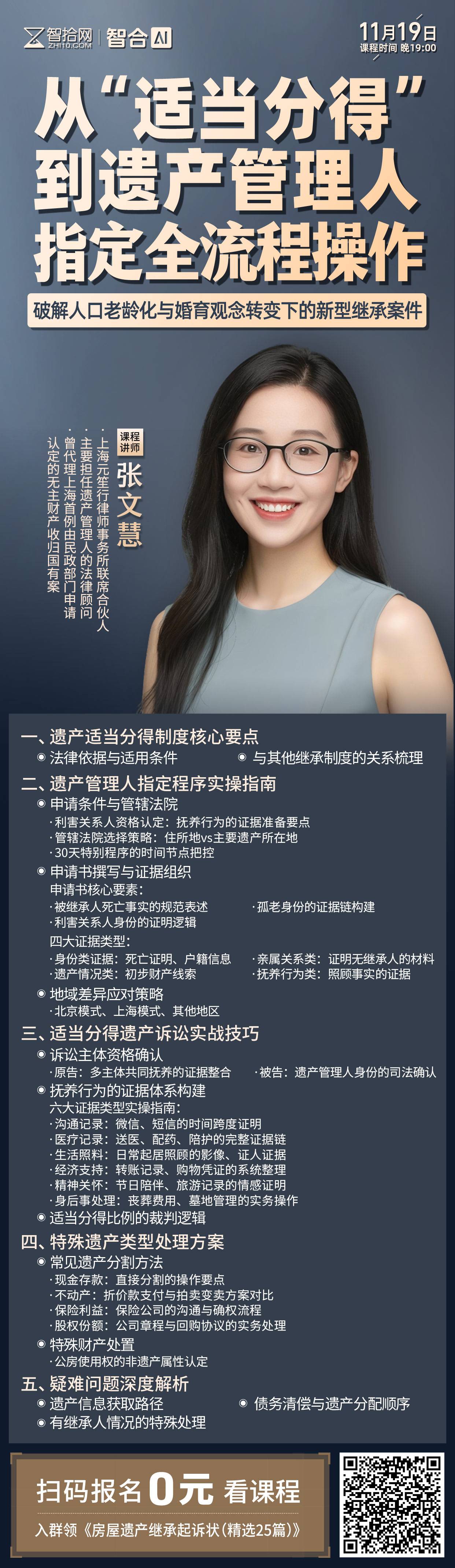 【直播回看】张文慧:从“适当分得”到遗产管理人指定全流程操作