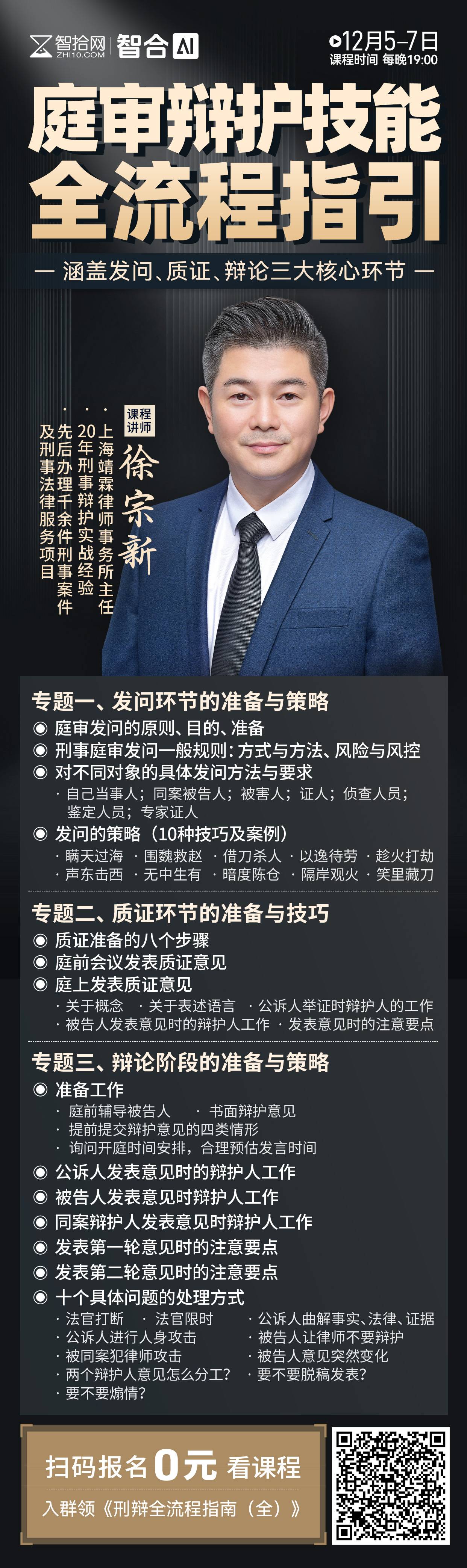 【三天免费课程】徐宗新:庭审辩护技能全流程指引