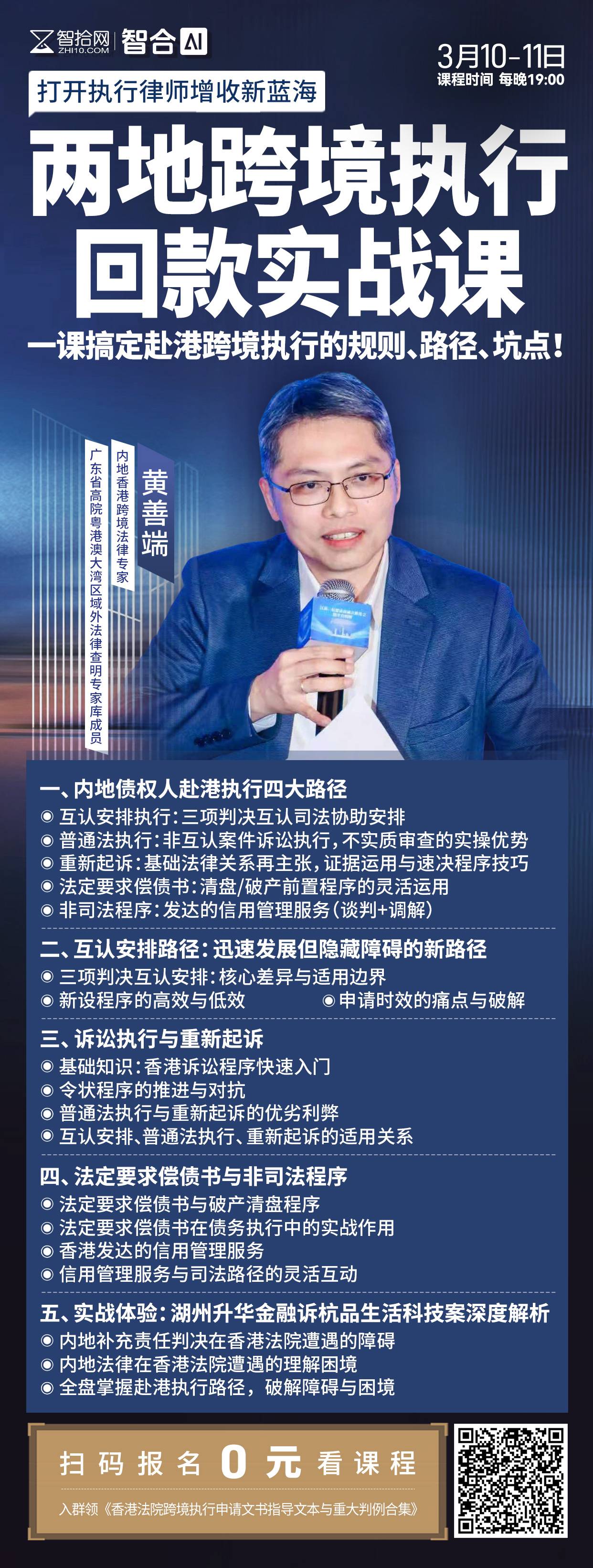 【两天免费直播】黄善端:两地跨境执行回款实战课