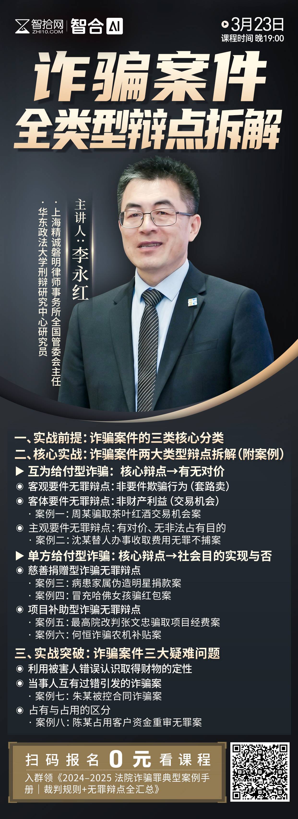 【课程回看】李永红:诈骗案件全类型辩点拆解