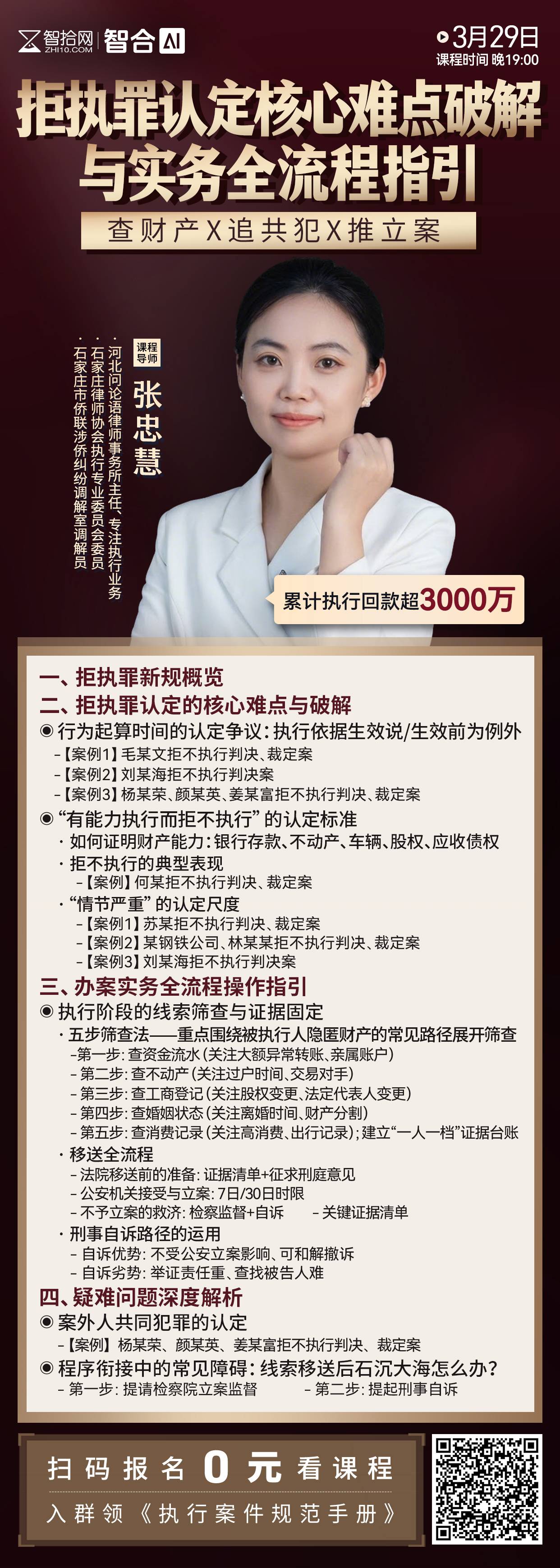 【免费直播】张忠慧:拒执罪认定核心难点破解与实务全流程指引